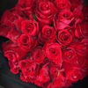 An opulent arrangement of 50 velvety red roses,. Wrapped in sleek black paper and tied with a bold red satin bow, this bouquet exudes luxury, romance, and sophistication.